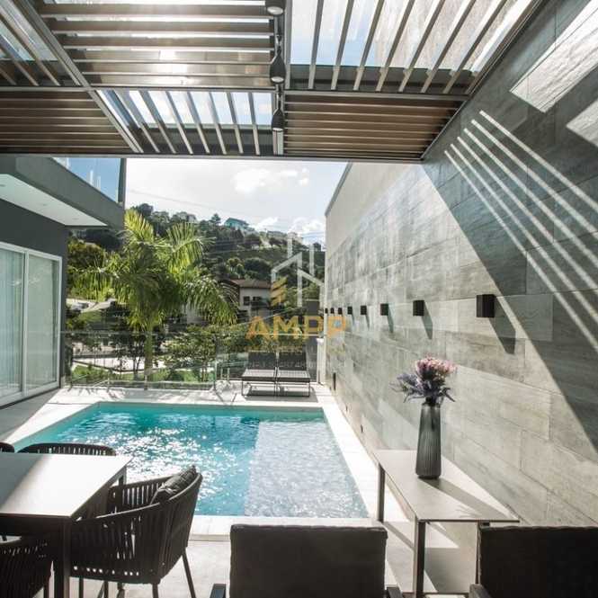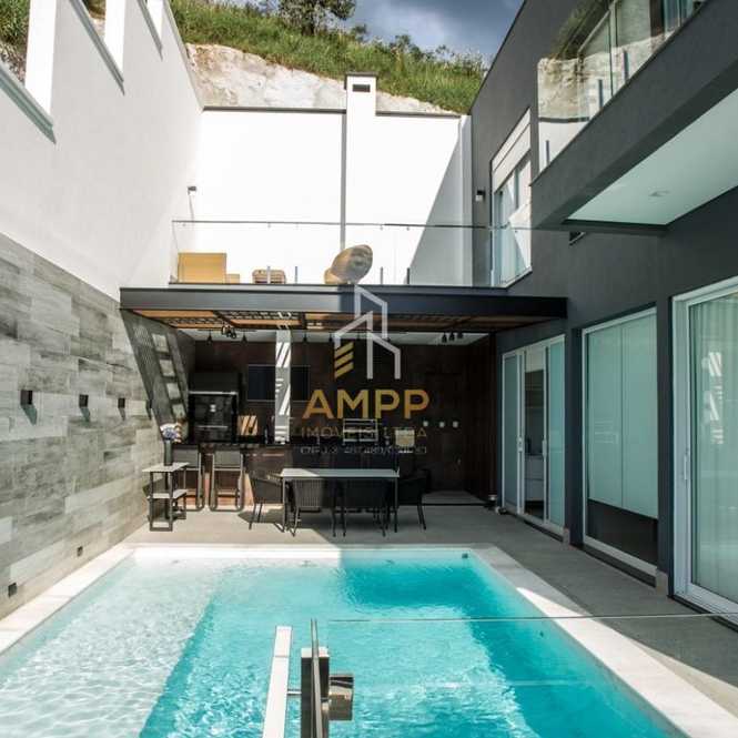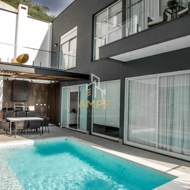 Casa de alto padrão toda mobiliada com 380 m² de área construída e 300 m² de terreno, com 3 suítes, 6 vagas de garagem, ar condicionado, piscina, área gourmet.