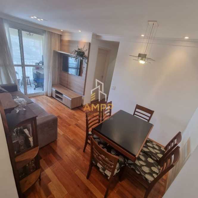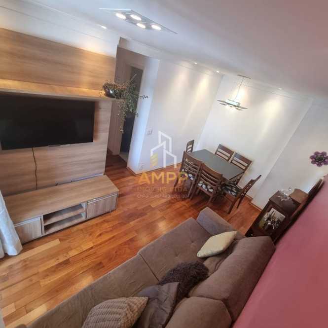 Apartamento de 53m² com 2 dormitórios (sendo 1 suíte), cozinha, sala, banheiro e 2 vagas de garagem.