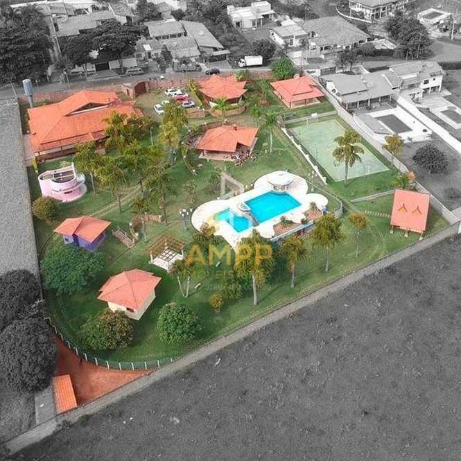A chácara possui salão de jogos, quadra poliesportiva, piscina com área de hidromassagem, quiosque, vestiário masculino e feminino, área de churrasqueira com cozinha, 2 banheiros, área para animais com galinheiro e horta.