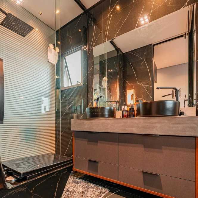 São 3 banheiros, todos com acabamentos refinados, proporcionando comodidade e elegância para os moradores e visitantes. A decoração foi cuidadosamente escolhida para criar uma atmosfera de luxo em cada ambiente.