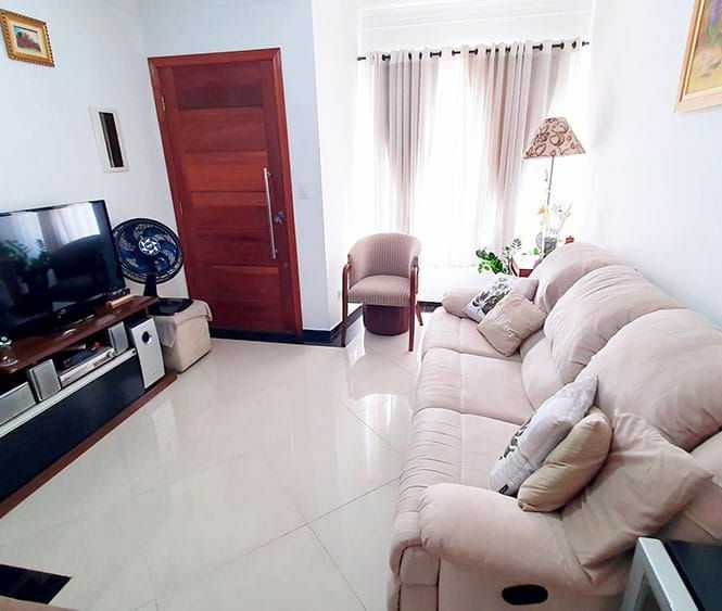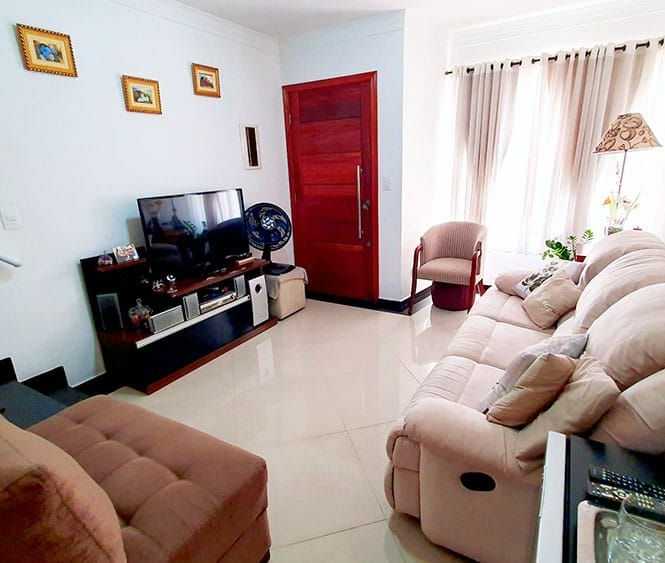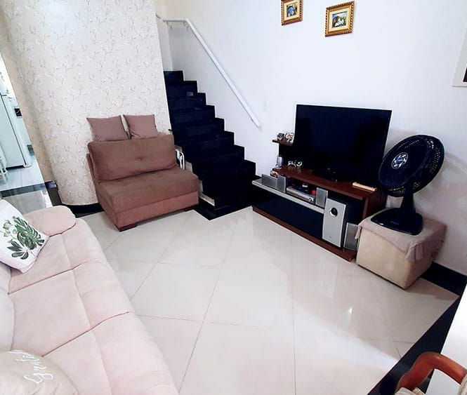 Casa Sobrado de 115 Metros com 2 Dormitorios sendo 2 suites com Armarios Planejados, banheiro social, sala dois ambientes, cozinha Moderna e planejada e 3 vagas de garagem