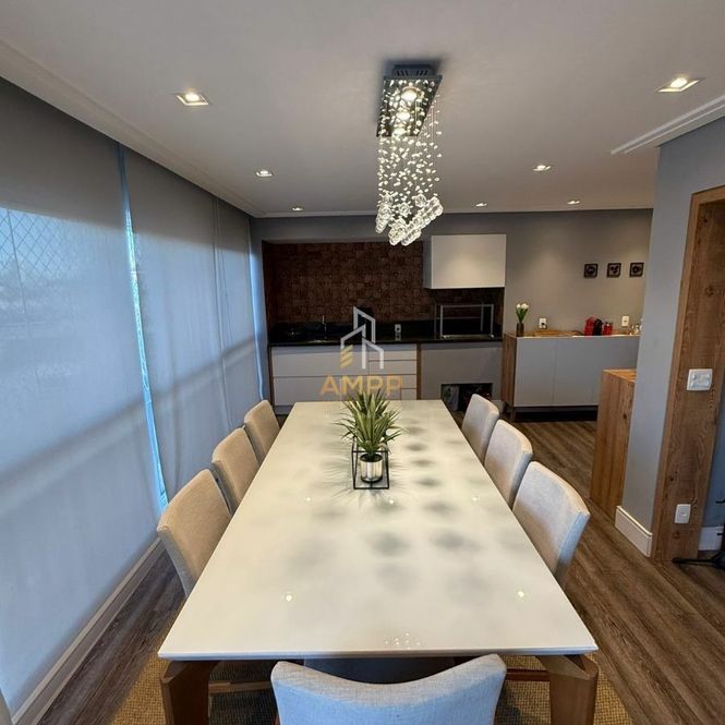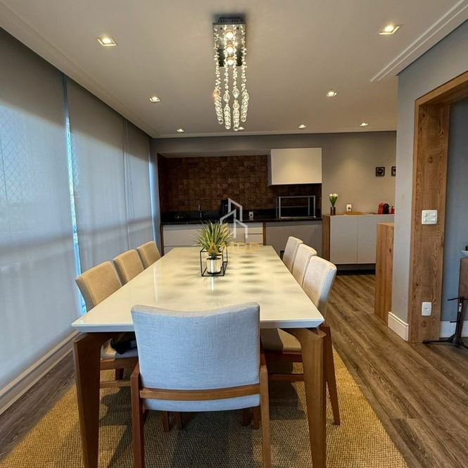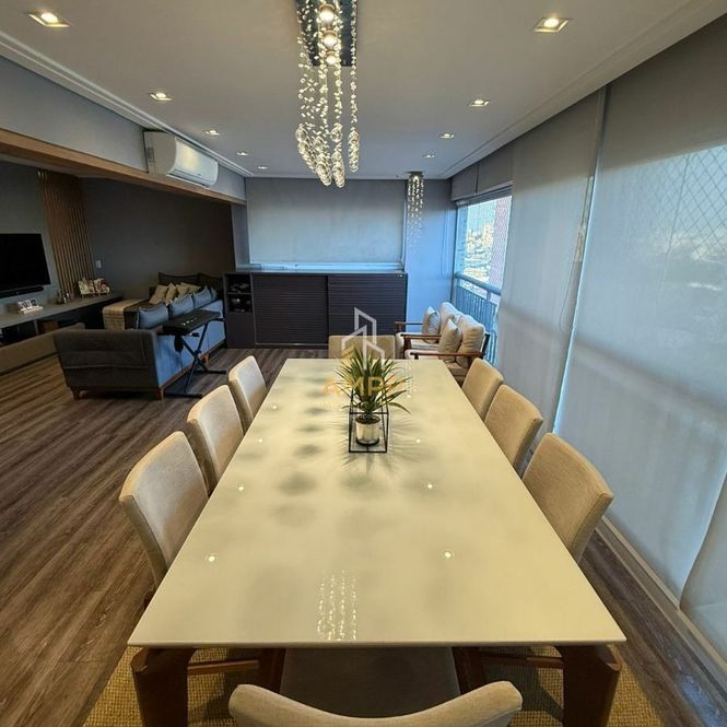 Apartamento de 176M² com 4 dormitórios, sendo 2 suítes, closet, ar condicionado, sala de estar, sala de jantar, varanda gourmet, cozinha, área de serviço, banheiro de serviço, 3 vagas de garagem e depósito privativo.