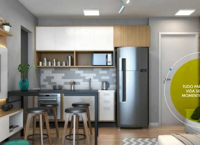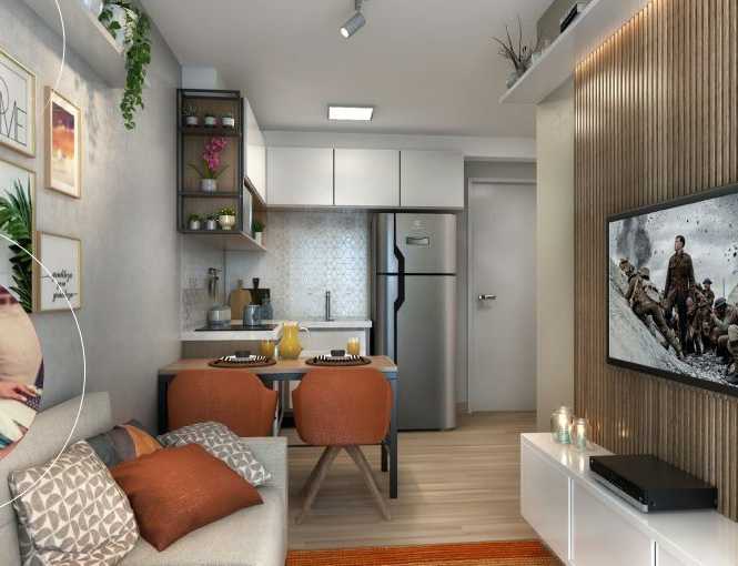 Apartamento de 27 Metros com 1 Dormitorio, Sala e cozinha