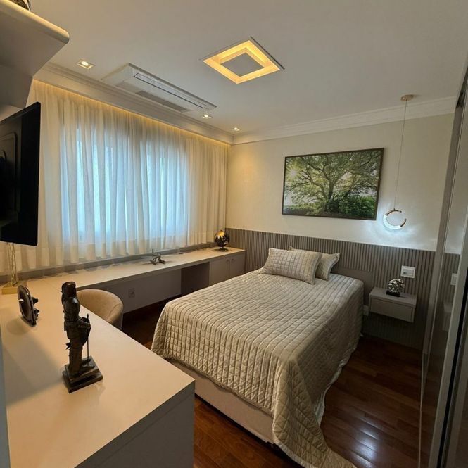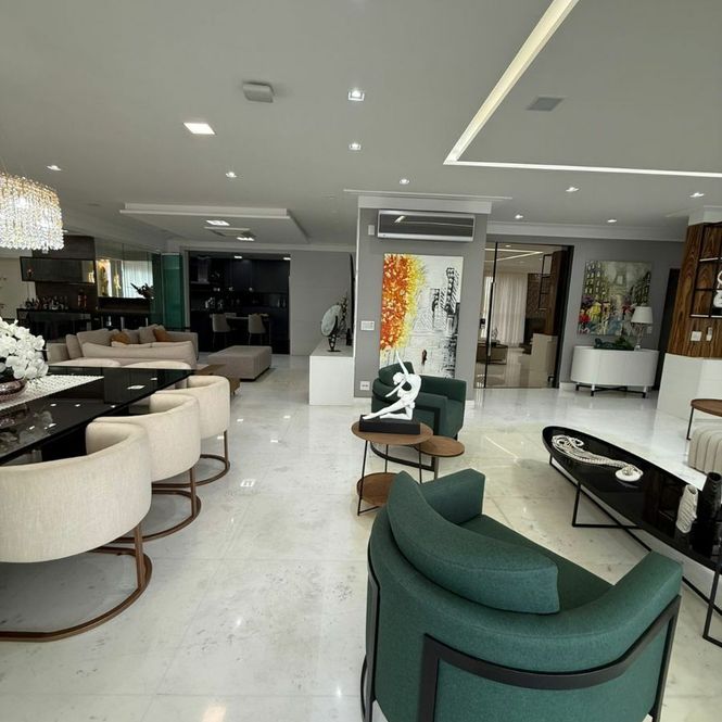 Este Belíssimo apartamento de Alto Padrão com moveis Planejados de 425M² com 5 suítes, cozinha, sala de estar, sala de jantar, closet, ar condicionado em tudo até varanda, varanda gourmet, Aspiração central ,lavabo, 7 vagas de garagem + Deposito e uma linda vista para você e sua família apreciar.