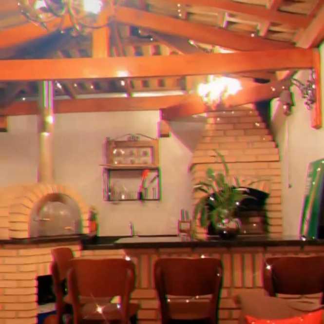 No mesmo ambiente da garagem e salão de festas ,área gourmet com churrasqueira a carvão e forno de pizza com decoração rustica!!