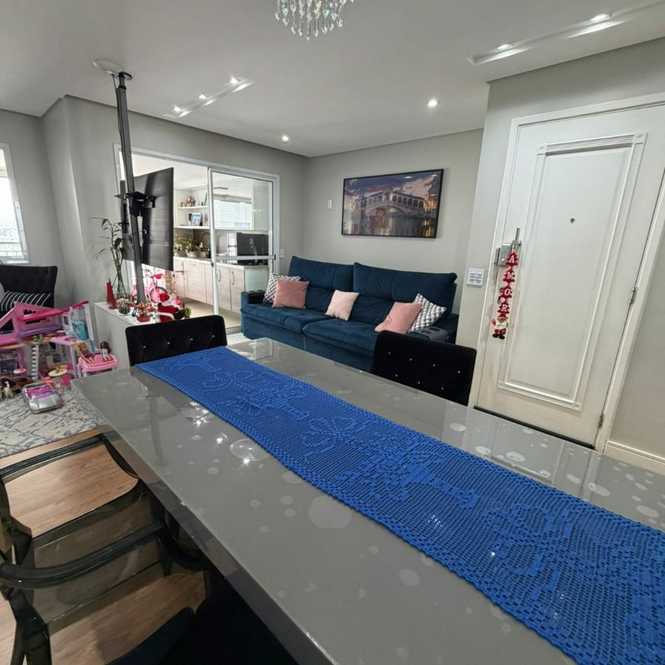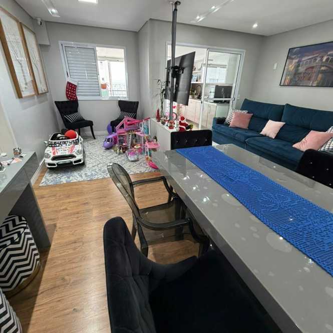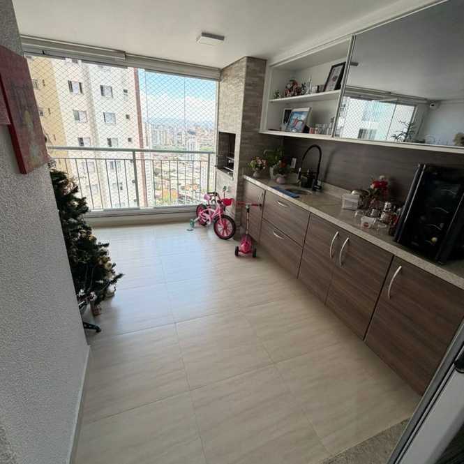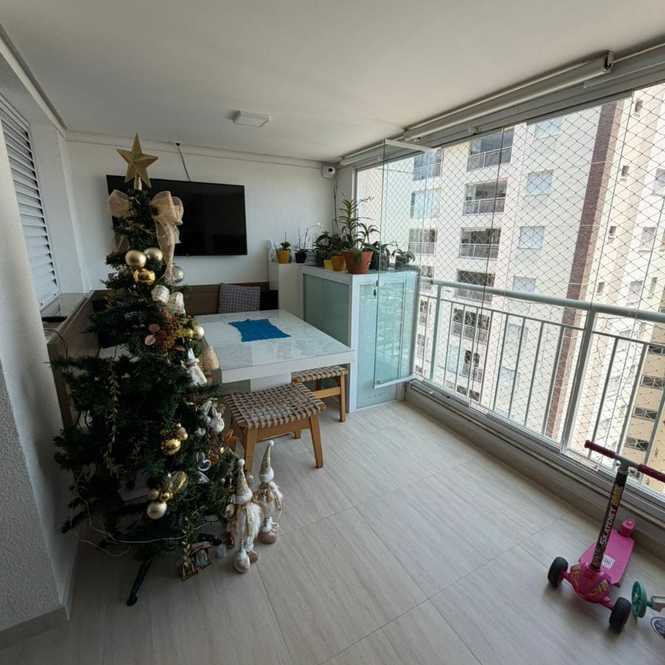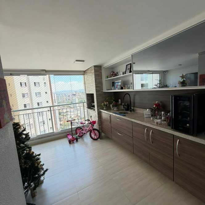 Apartemento de 106 Metros com 3 dormitorios sendo 1 Suite, banheiro de serviço, sala para 2 ambientes, Ar Condicionado, varanda gourmet, lavabo, cozinha planejada, área de serviço, banheiro de serviço e 2 vagas de garagem.