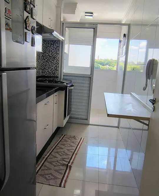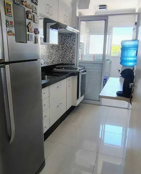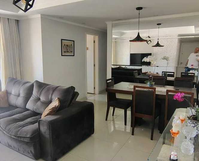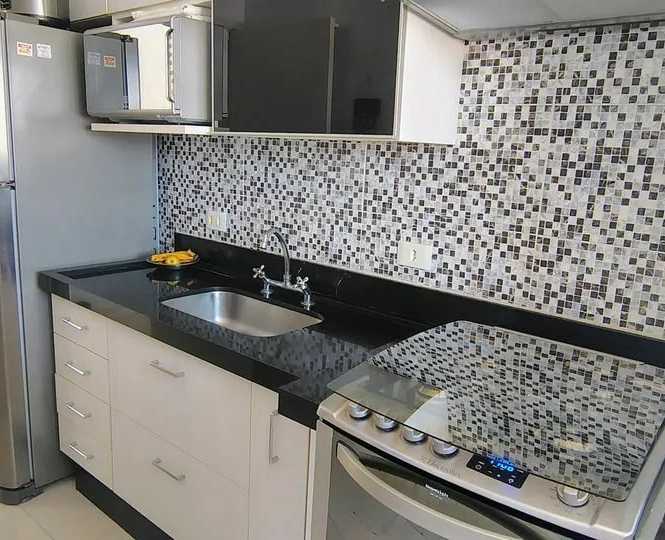 Apartamento de 76 Metros com 3 Dormitorios sendo 1 Suíte, com armários embutidos na cozinha e lavanderia, aquecedor a gás, balcão de apoio articulado, fogão embutido, depurador de ar, piso frio em porcelanato, sanca na sala, parede com espelhos, sacada gourmet com pia e armário com churrasqueira elétrica, fechamento da varanda em vidro articulado, armários embutidos nos banheiros e cubas sobrepostas, pias em mármore, armários embutidos nos quartos, suite com sanca e painel de cama com criado mudo embutido além de 1 Vaga de garagem