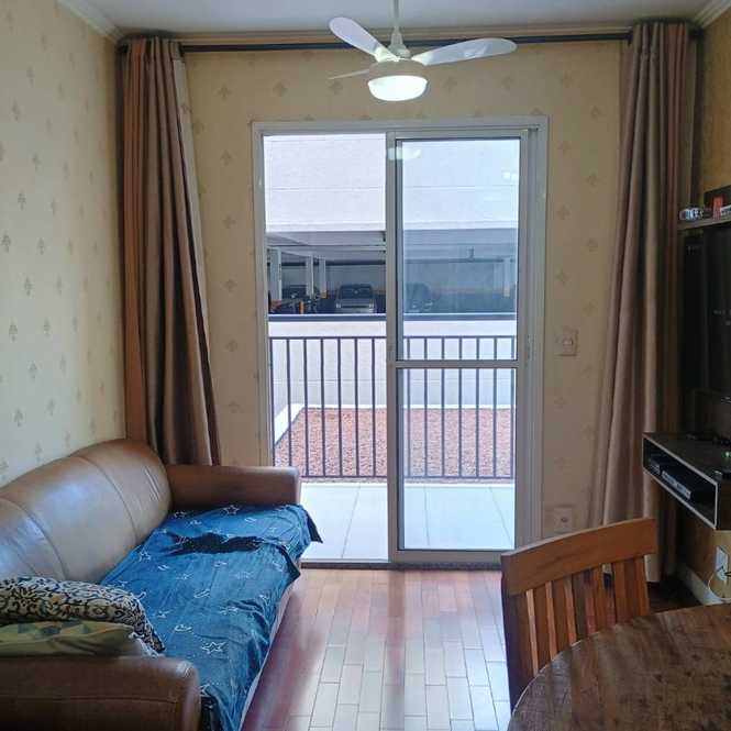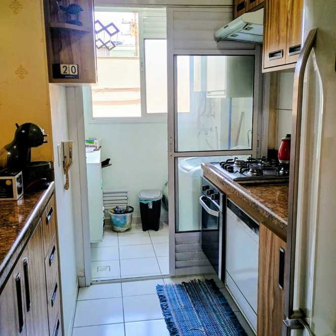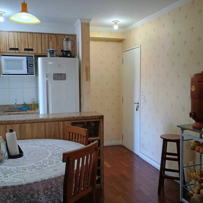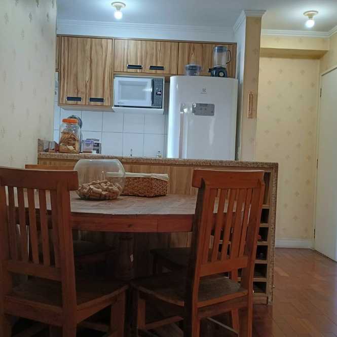 Apartamento à venda, 49 m², 2 dormitórios, sala com sacada, cozinha, banheiro, área de serviço e 1 vaga de garagem.