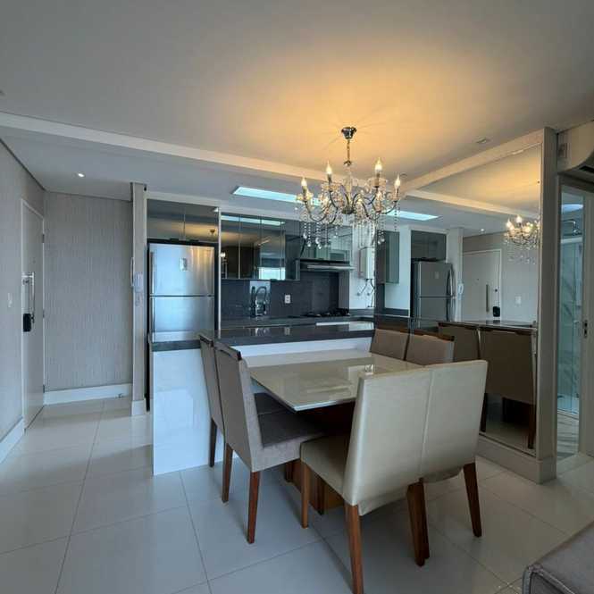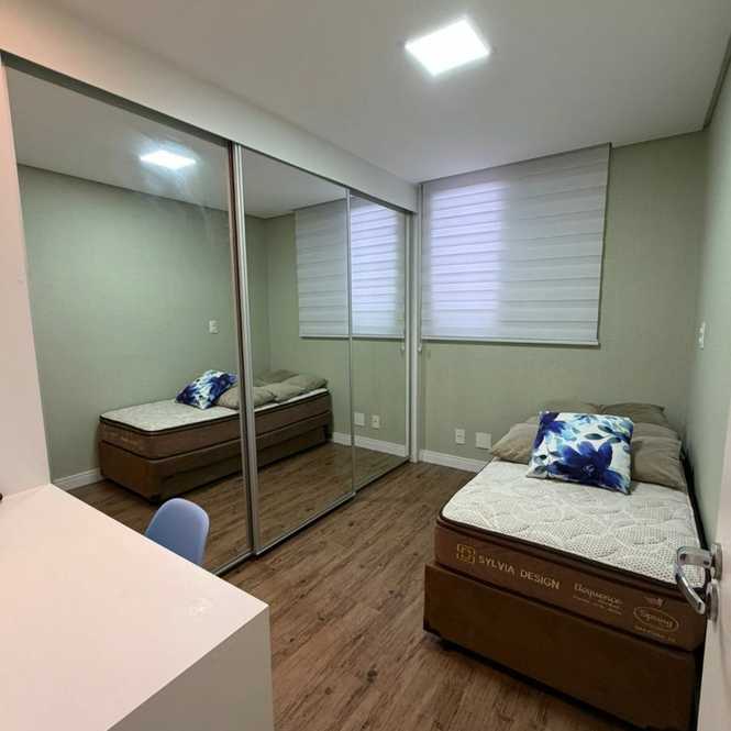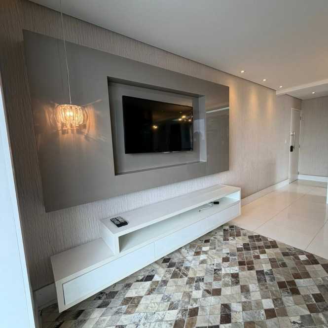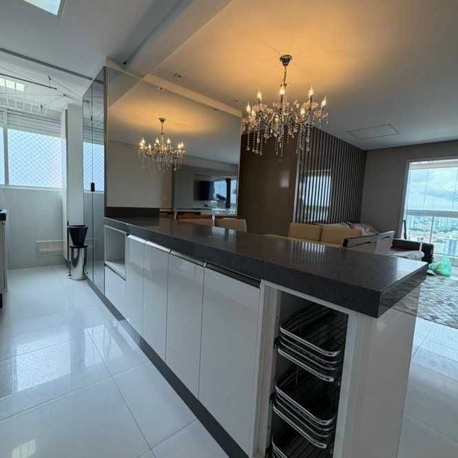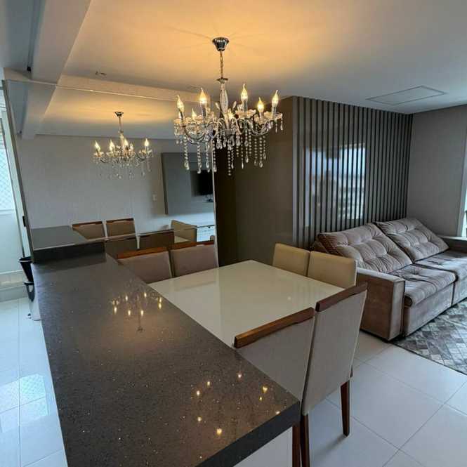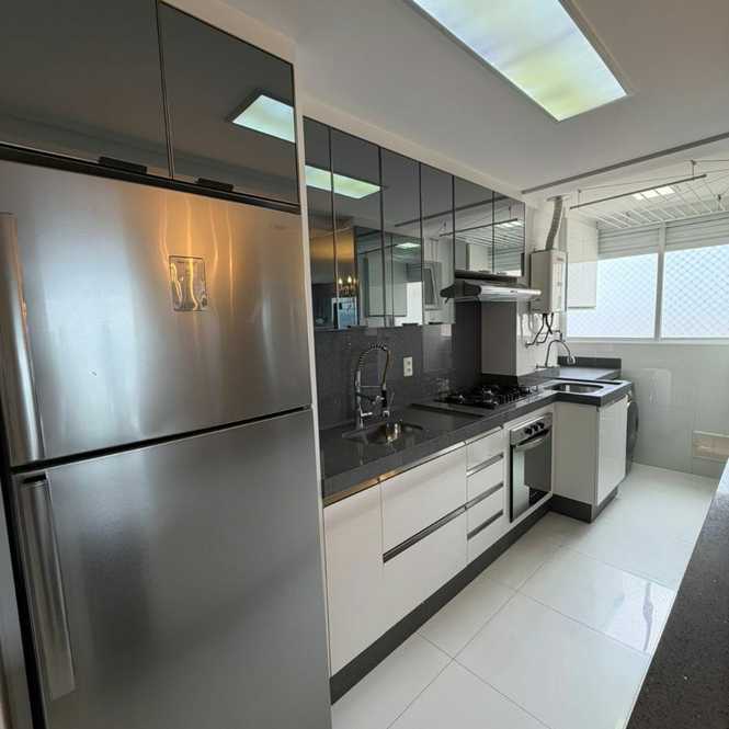 Apartamento de 78m² com 3 dormitórios (sendo 1 suíte), cozinha, sala, 2 banheiros, área de serviço e 2 vagas de garagem.