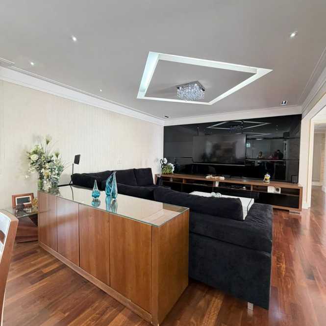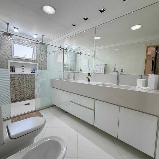 Apartamento de 242 m² com 4 suítes, lavabo, área de serviço, 4 vagas de garagem, depósito privativo no subsolo, lazer completo.